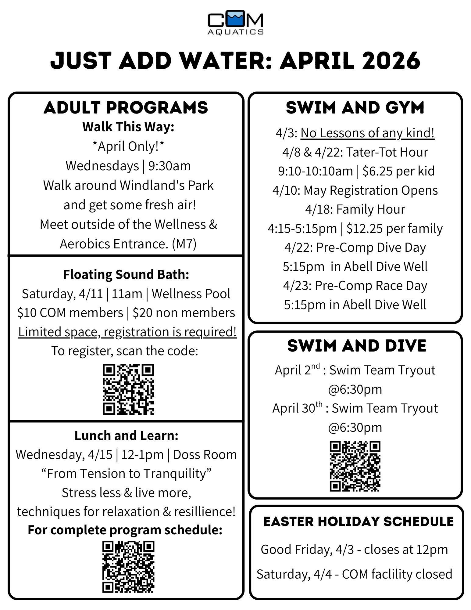 Physical Therapy: physicaltherapy@comaquatics.com