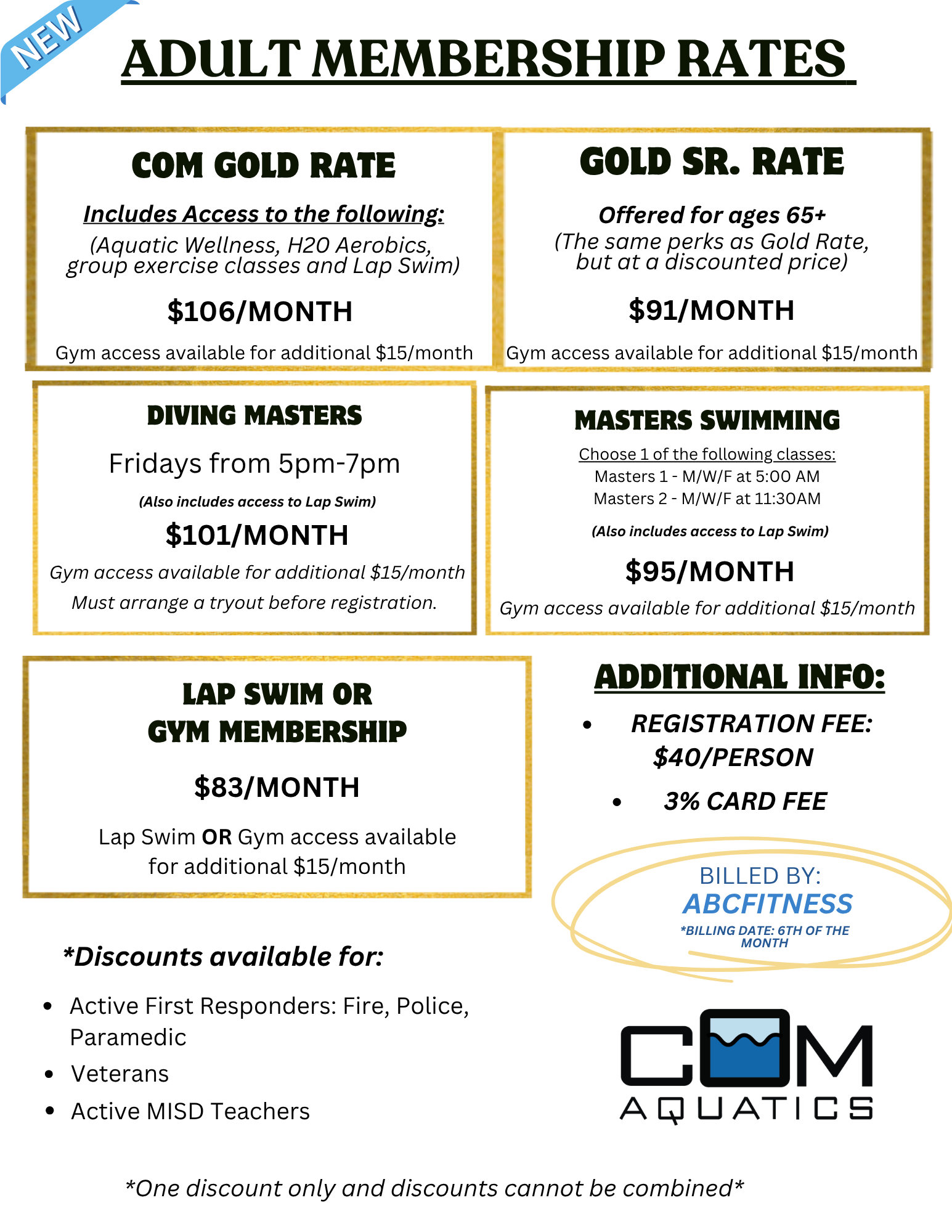 Membership, billing, lap swim, gym, and anything else:
